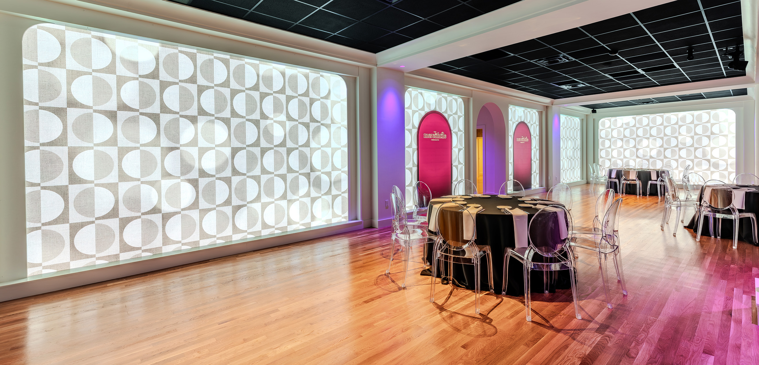 The Mercantile Immersive redefines custom events with a new standard for immersive experiences. Two adjoining rooms feature floor-to-ceiling LED displays with hundreds of millions of pixels. High-end technology is at your fingertips with a catalogue of high-resolution, IMAX-quality visuals, high-fidelity spatial audio, and dynamic lighting. Streamline setup with seamlessly integrated live camera feeds, presentation capabilities, and programmable interior lighting.